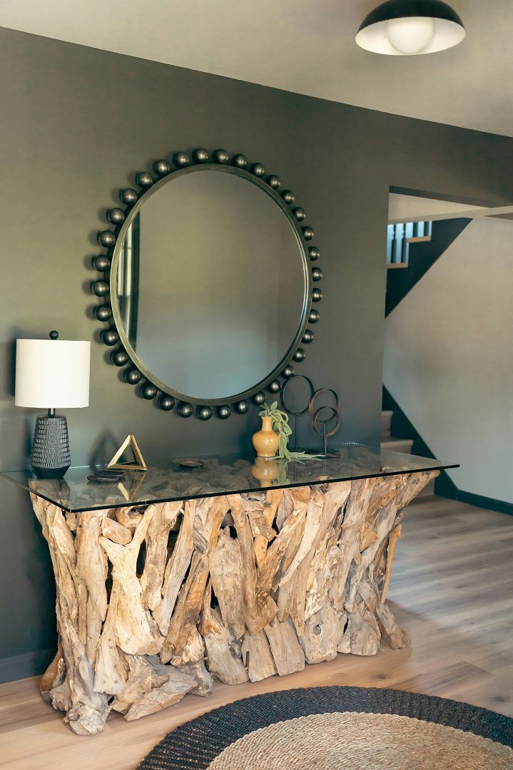 يعتمد نجاح تنسيق طاولة الكونسول على وجود عنصر بصري بارز يجذب الأنظار، مثل مرآة كبيرة تضفي اتساعًا على المدخل أو لوحة فنية مميزة. وجود هذه القطعة يمنح الترتيب إطارًا واضحًا ويجعل بقية عناصر الديكور تبدو أكثر تناغمًا.