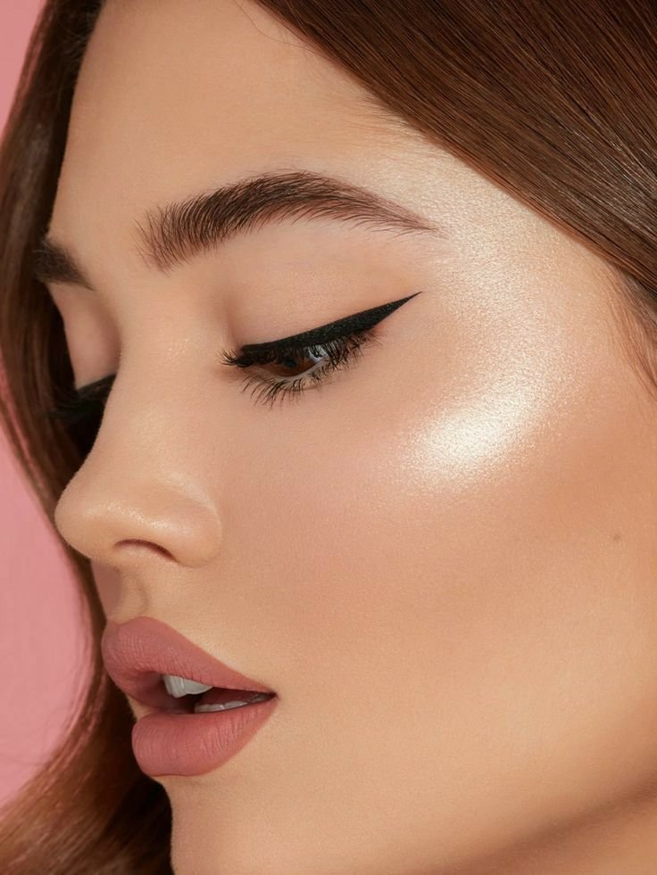 أما الهايلايتر، فطبّقيه بلمسات مدروسة على أعلى الخدّين وزوايا العين وطرف الأنف، للحصول على توهّج طبيعي بعيد عن المبالغة.