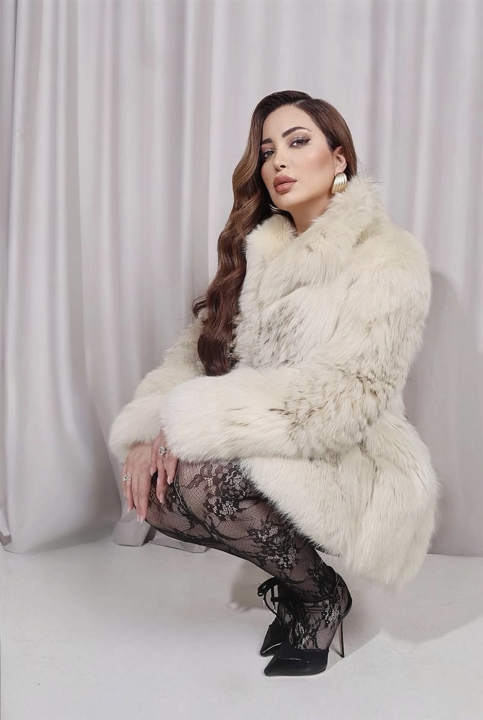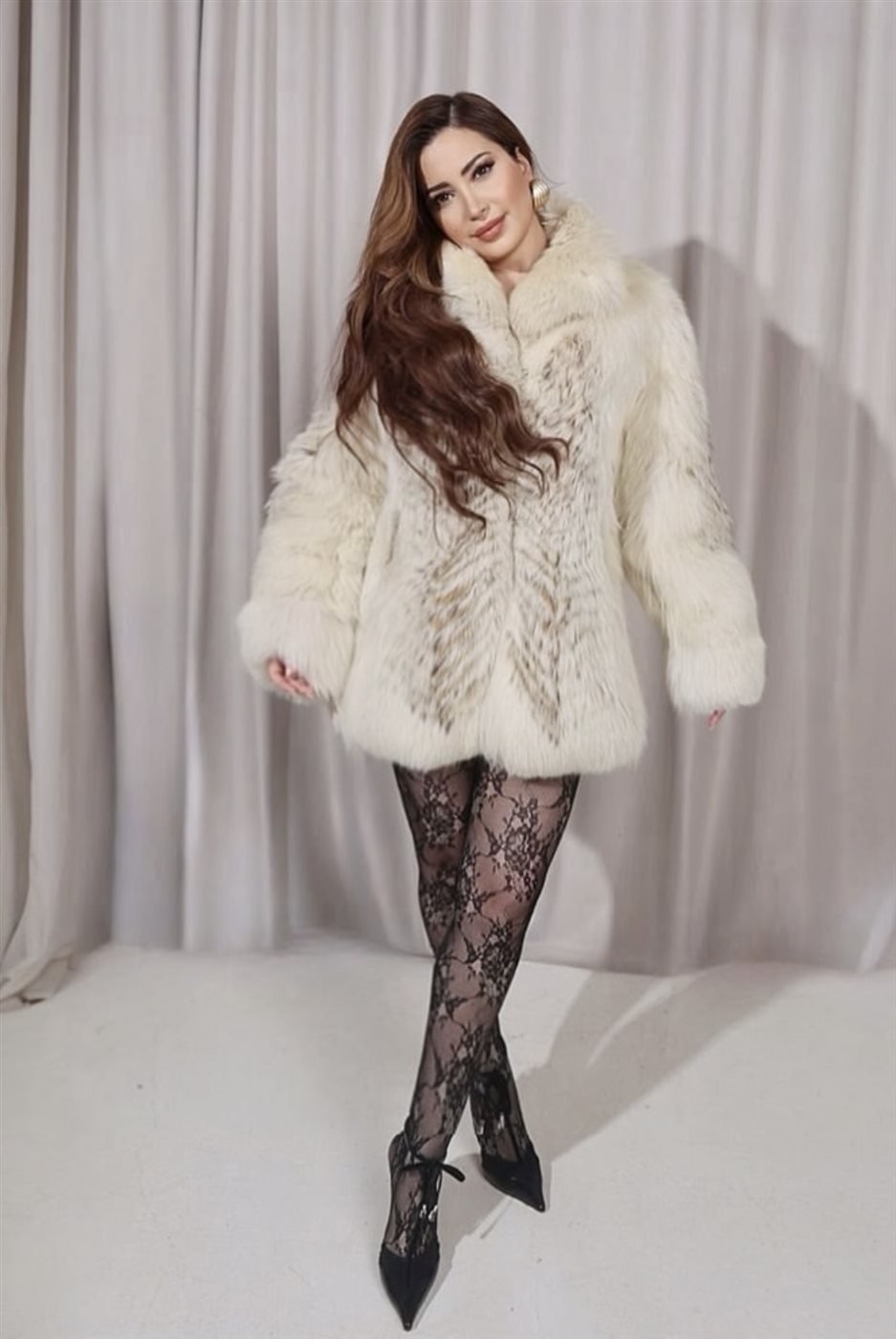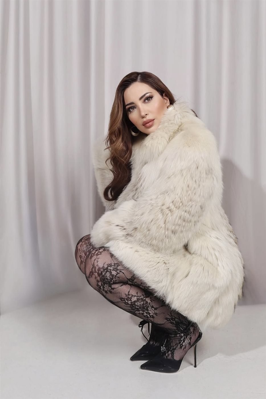 اعتمدت نسرين طافش في إطلالتها على معطف فرو أبيض منحها حضورًا فخمًا.