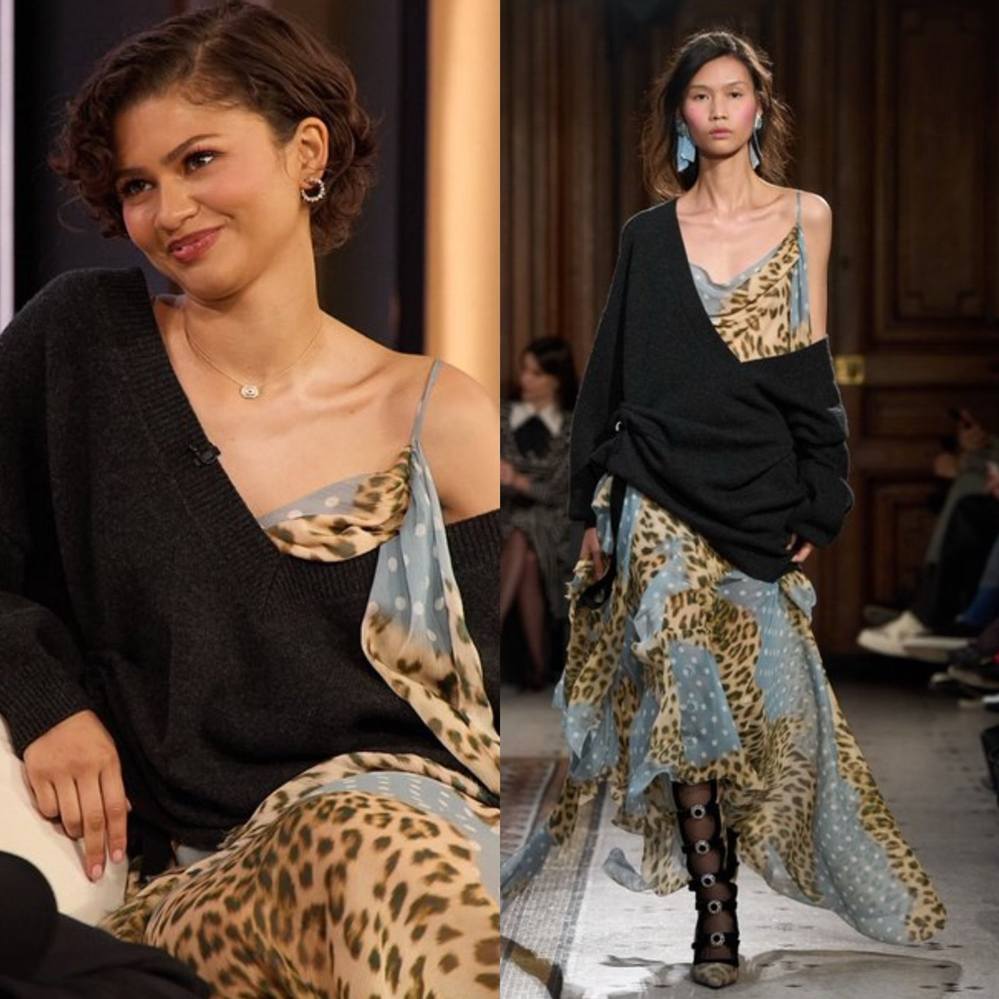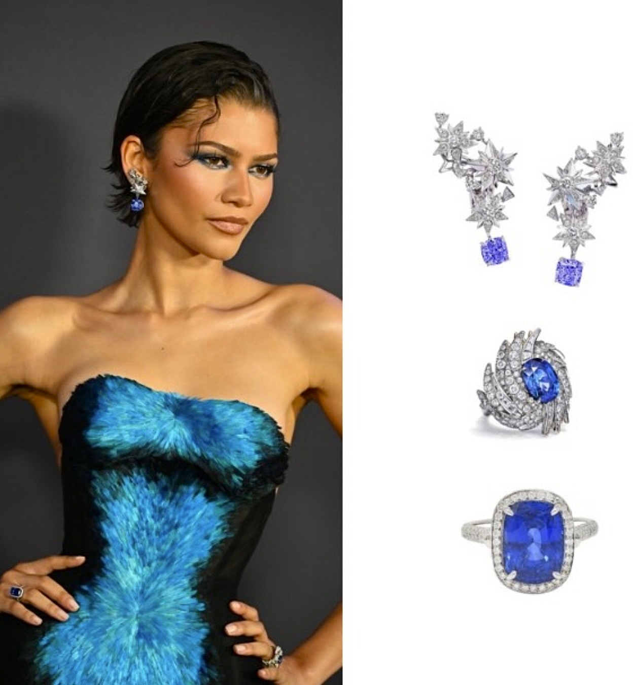 وفي ظهورها في برنامج The Tonight Show مع Jimmy Fallon، اختارت زندايا فستان دانتيل أزرق من Zimmermann.