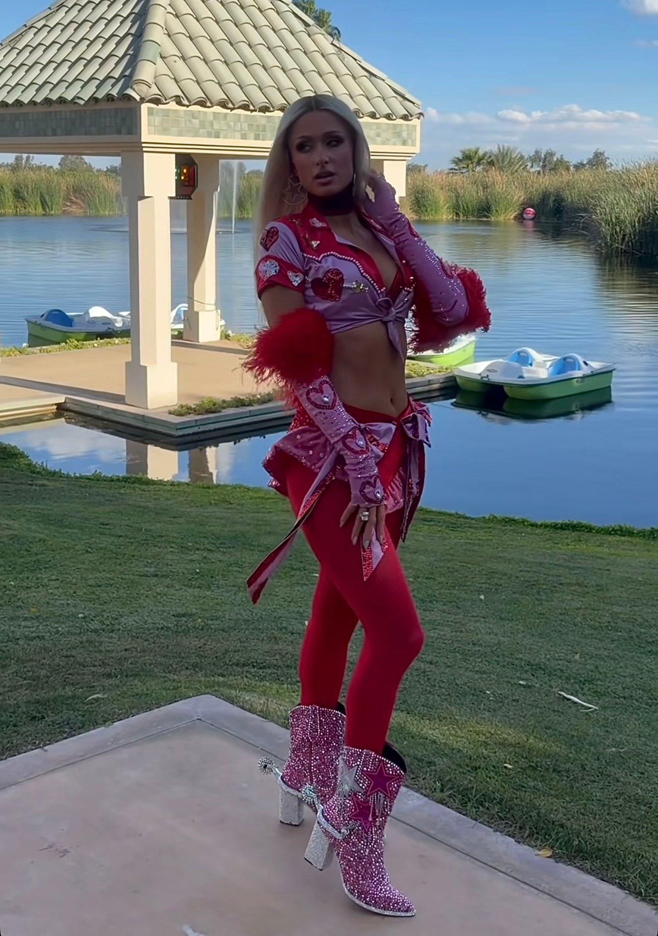 كما حافظت باريس هيلتون على طابعها المميز بروح مرحة مستوحاة من أسلوب الغرب الأمريكي.